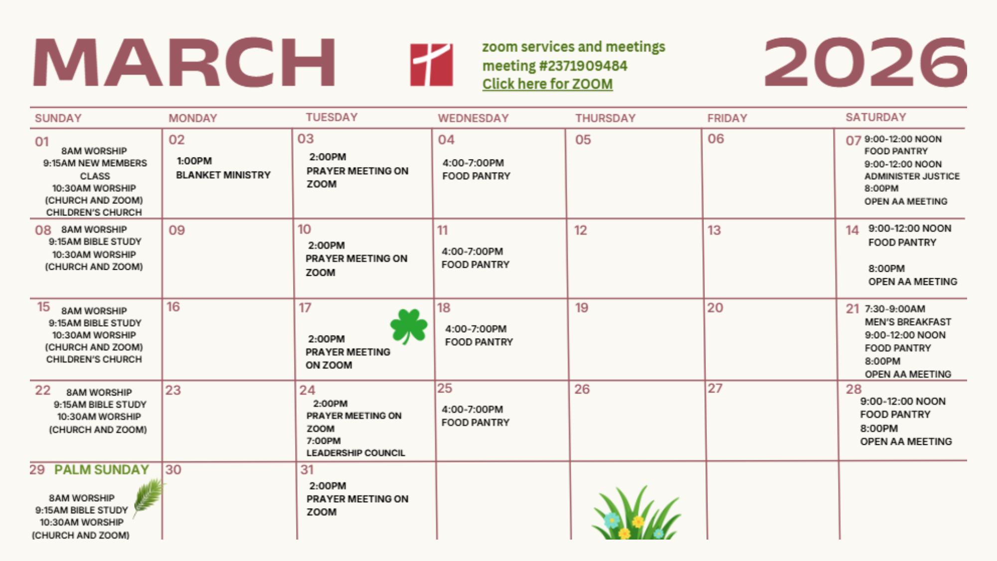 Below is the calendar for the month. Please join us for the events that are happening and also continue to pray for our members, church, community, and country.